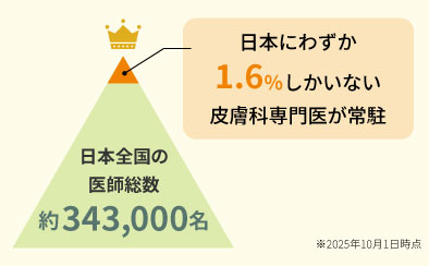 美容医療において、「肌を診る確かな目」は治療の成否を分けます。当院では、日本にわずか1.6%しかいない「皮膚科専門医」が常駐し、お客様の肌を診断・治療にあたります。