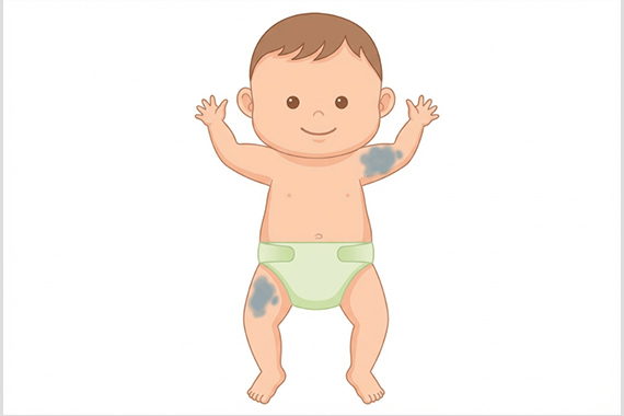通常の蒙古斑よりも色が濃く、境界がはっきりしている場合が多いです。