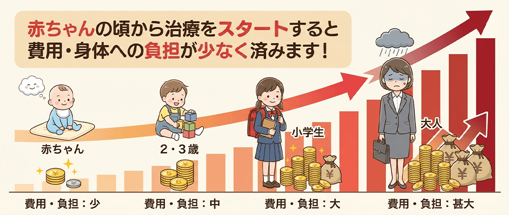 | 治療開始時期 | 赤ちゃんは生後間もない時期からの開始が最も効果的です |