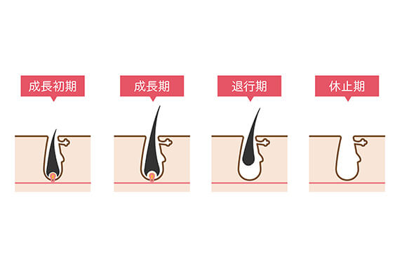 私たちの体毛には一本一本に寿命があり、「生えて成長し、抜け落ち、休んでまた生えてくる」という一定のサイクルを繰り返しています。これを「毛周期」と呼びます。