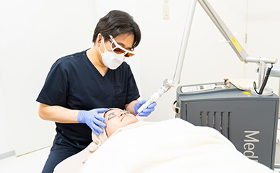 従来のQスイッチレーザーに加え、肌への負担がさらに少ない「ピコレーザー」を導入。色素沈着などのリスクを最小限に抑えます。