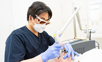 医師が肌の状態を見極めながら、適切な出力で照射を行います。